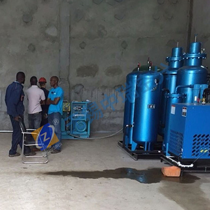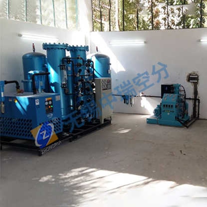 中瑞制氧及氣瓶充裝系統利用制氧機現場直接從壓縮空氣中制取高純度氧氣,增壓后的氧氣充瓶壓力可達到150Bar,實現連續不間斷生產和充裝氧氣。整套系統主要由空壓機,空氣后處理系統,制氧機,氧氣增壓機,充裝系統和氧氣瓶等組成
